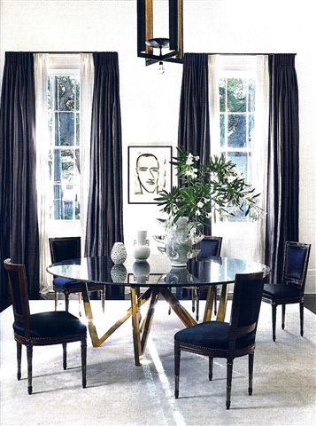 I absolutely LOVE the use of an almost violet-y midnight blue on the walls here. It takes the room to an entirely different place.